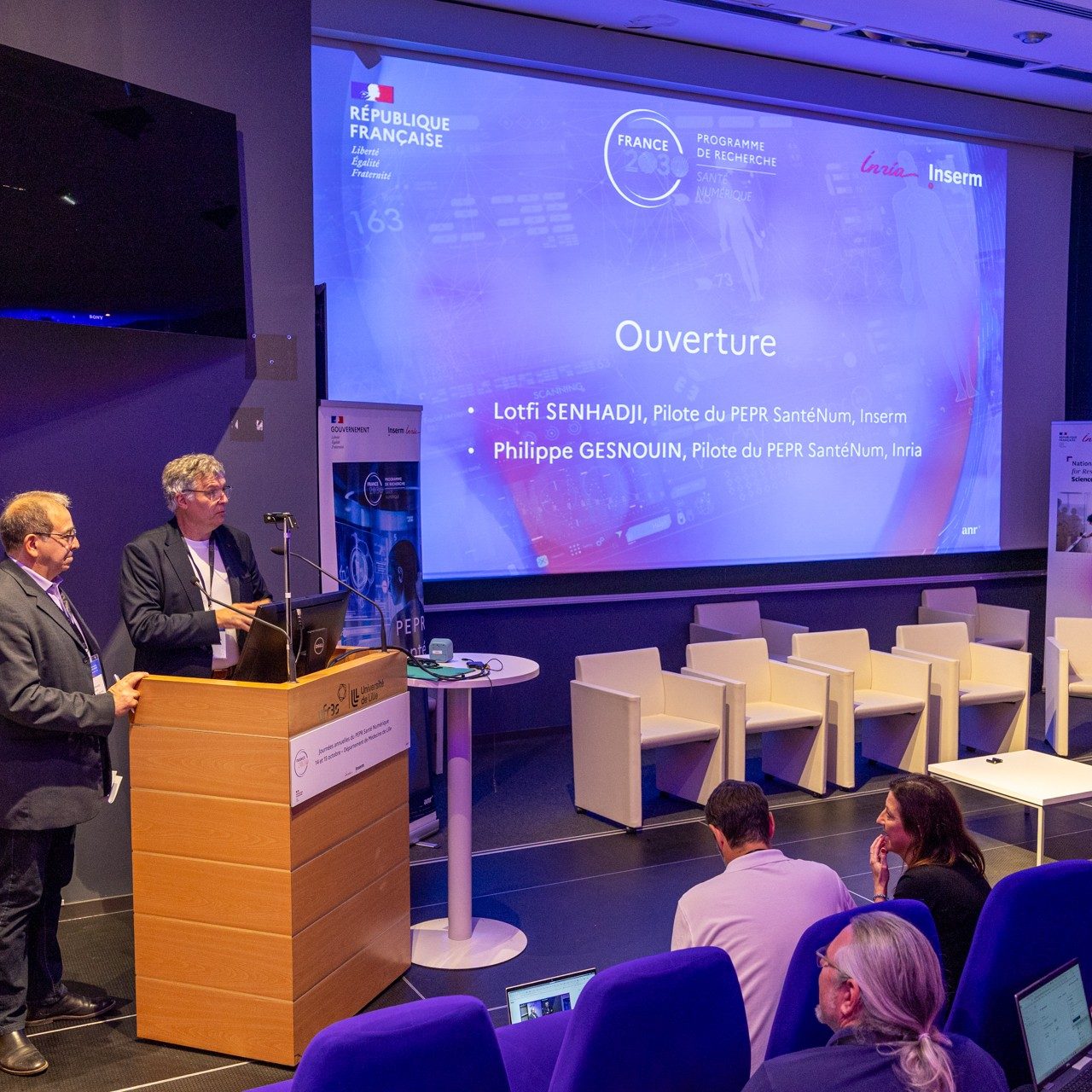 Les pilotes scientifiques, Lotfi Senhadji, professeur à l’Université de Rennes, pour l’Inserm, et Philippe Gesnouin, directeur du Programme numérique en santé d’Inria, ont ensuite pris la parole au nom du Comité de pilotage.