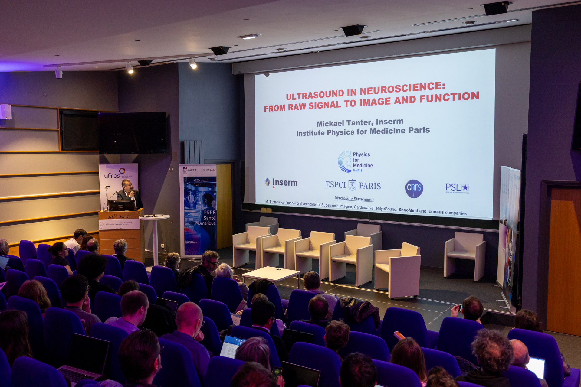 Ainsi, Mickaël Tanter (Inserm, Institut Physics for Medicine, Paris), Marco Lorenzi (Inria, équipe EPIONE, Université Côte d’Azur), Evgénia Babykina (Université de Lille) et Alfredo Hernandez (Inserm, LTSI U1099, Université de Rennes) ont introduit les quatre thématiques par une keynote, avant les présentations scientifiques réalisées devant une communauté attentive réunie en session plénière.