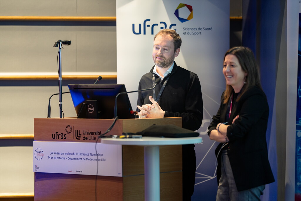 Après un mot de bienvenue du Professeur Dominique Lacroix, doyen de l’UFR3S, les représentants locaux des pilotes du PEPR, Luc Buée, référent scientifique pour l’Inserm, et Stéphane Huot, directeur du Centre Inria de l’Université de Lille, ont accueilli les participants.